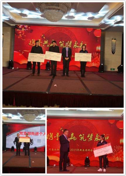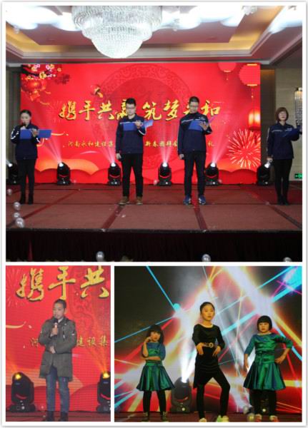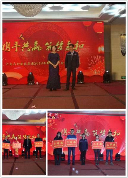 金戈鐵馬聞?wù)鞴?,只?zhēng)朝夕啟新程。2019年1月26日下午,“攜手共贏筑夢(mèng)永和”——河南永和建設(shè)集團(tuán)2019年新春團(tuán)拜會(huì)暨頒獎(jiǎng)典禮在錦江國際酒店隆重召開,信陽市政協(xié)副主席、市工商聯(lián)主席陳豫,信陽市平橋區(qū)政協(xié)副主席陳明德、信陽市委統(tǒng) 戰(zhàn)部辦公室主任楊輝、信陽市平橋區(qū)工商聯(lián)主席張虹、商城縣、羅山縣、五里辦事處等多位領(lǐng)導(dǎo)、信陽日?qǐng)?bào)社、信陽電視臺(tái)等多家媒體領(lǐng)導(dǎo)及新聞?dòng)浾?、河南永和建設(shè)集團(tuán)有限公司全體員工及家屬、合作商,社會(huì)友人出席了本次團(tuán)拜會(huì)。大家歡聚一堂,辭舊迎新、表彰、文藝展演,共同度過了振奮人心又愉快難忘的時(shí)光。