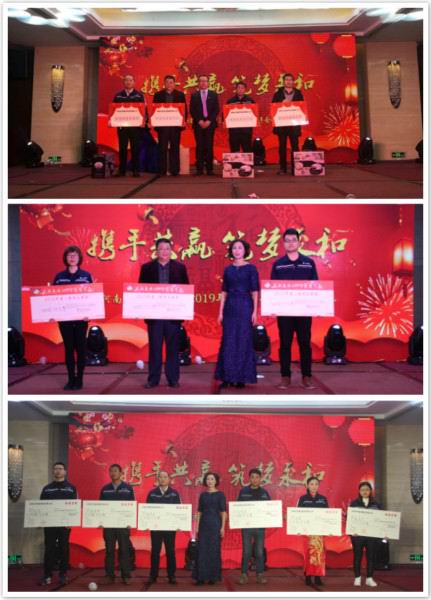 團(tuán)拜會(huì)中間還穿插了抽獎(jiǎng)環(huán)節(jié),隨著各等獎(jiǎng)項(xiàng)的抽取,不斷掀起團(tuán)拜會(huì)的高 潮。同時(shí),團(tuán)拜會(huì)還揭曉了2018年為永和集團(tuán)作出突出貢獻(xiàn)的各大獎(jiǎng)項(xiàng)?;鶎?、中層、高層、團(tuán)隊(duì)獎(jiǎng)、特別奉獻(xiàn)獎(jiǎng)、精神文明獎(jiǎng)、合作伙伴獎(jiǎng)、效益獎(jiǎng)、年度黨員獎(jiǎng)、黨支部先進(jìn)個(gè)人獎(jiǎng)等多項(xiàng)獎(jiǎng)項(xiàng),對(duì)永和人過去一年為公司的付出表示肯定,為永和人的來年鼓足了干勁。