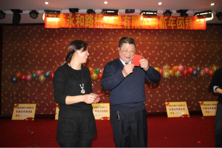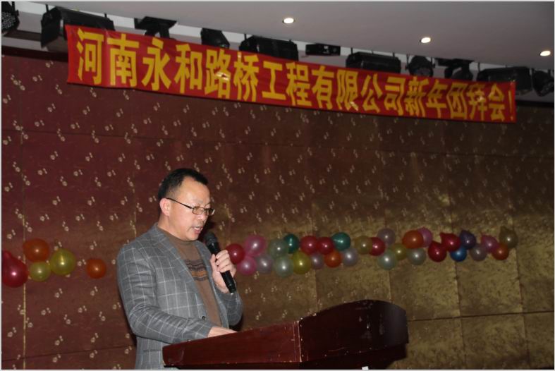 2016年2月4日晚,農(nóng)歷臘月26日晚,河南永和路橋工程有限公司在信陽市五星 級酒店中樂百花酒店隆重的舉行了2016年新春團拜會,本次團拜會由公司全體員工及家屬、公司的合作伙伴、朋友等共同出席,大家歡聚一堂、把酒言歡、其樂融融。公司董事長孔總發(fā)表新年賀詞并代表公司對年度優(yōu) 秀個人及團隊進行了表彰。公司還為到場的每位小寶寶送上新年祝福和紅包,并準備了抽獎環(huán)節(jié)。大家歡歌笑語,一直將熱鬧、愉快的氛圍維持到午夜。